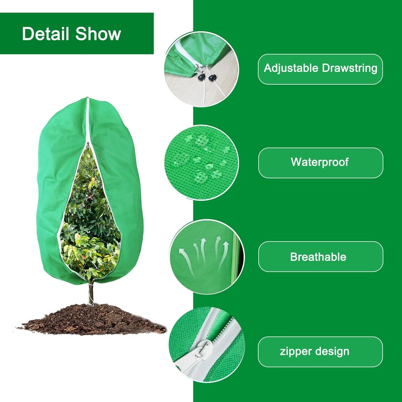 - Convenient Drawstring & Zipper Design: the bottom of our plant protection cover features a easy-to-use drawstring that secures plants against wind and weather. On one side, we've added a long zipper to make installation and removal a breeze. Just place the plant blanket over your plant's leaves and gently tighten the drawstring around the stem