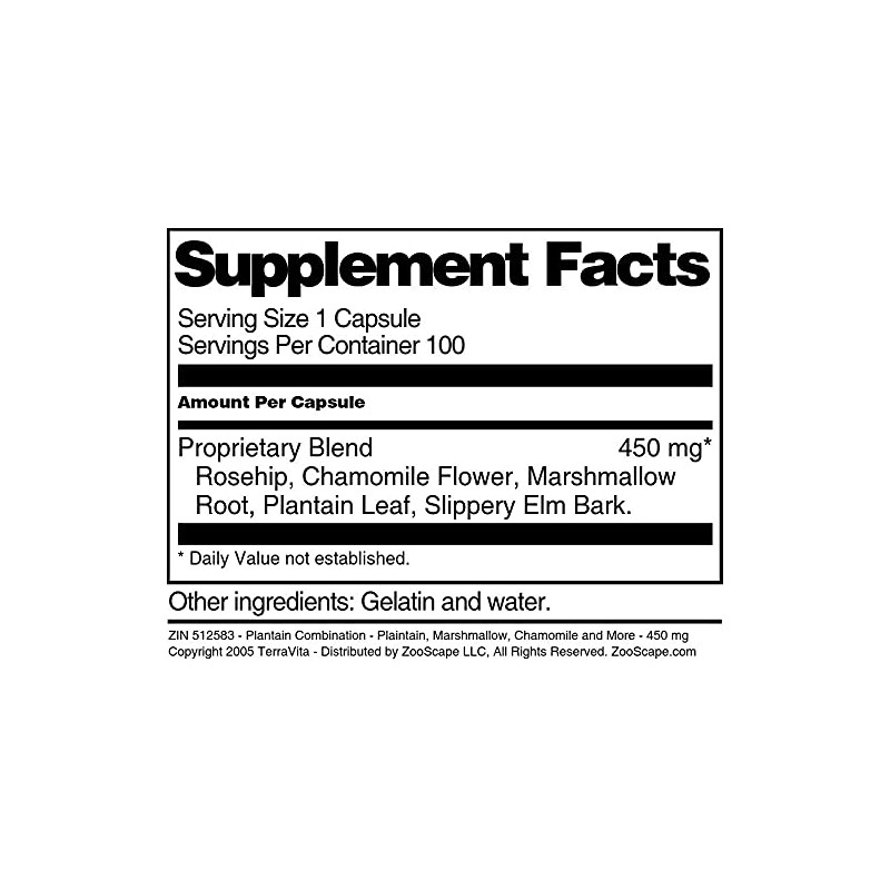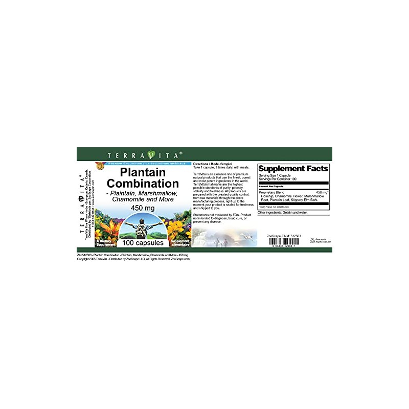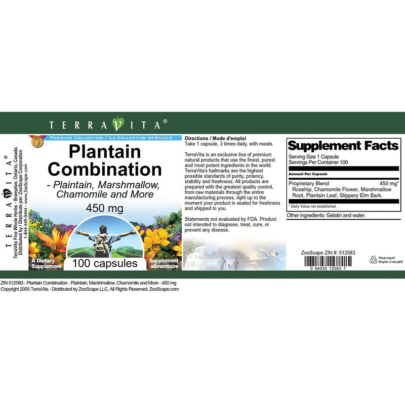 - Plantain Combination - Plaintain, Marshmallow, Chamomile and More - 450 mg (100 capsules, ZIN: 512583)