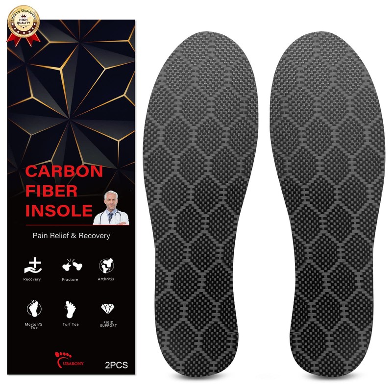 - Actualización del material: las plantillas de fibra de carbono UBARONY están diseñadas por un proveedor de atención médica, diseñadas por un ingeniero mecánico, y tienen una superficie texturizada 3D para ayudar a evitar que se deslice en el zapato. Esta suela de fibra de carbono es de 1,3 mm de grosor y ligera, duradera y última intervensión de corrosión. Buen soporte rígido y gran estabilidad para tus pies, puede flexionar algunos y volver a su forma original. Una excelente opción para personas con dolor de pies.