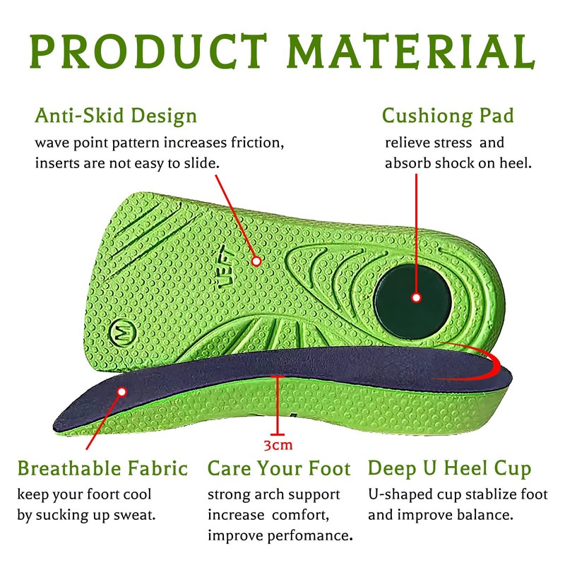 - Material de alta calidad: los insertos ortopédicos de soporte de arco alto 3/4 están hechos de material EVA de alta calidad con absorción de sudor, capa superior transpirable y microfibra resistente al desgaste, antideslizante. Al reducir el calor y la fricción, la tela suave superior deja los pies más cómodos, protegidos y frescos.