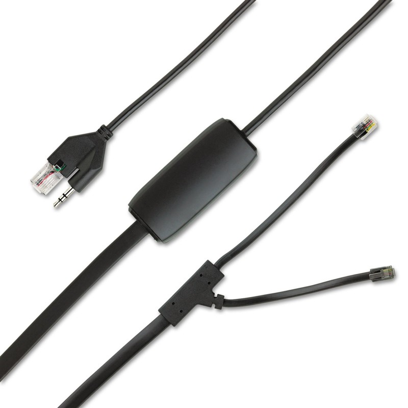 Electronic hook switch cable for remote desk phone call control (answer/end). It eliminates the need for a HL10 Handset Lifter. Works with Polycom desk phones.