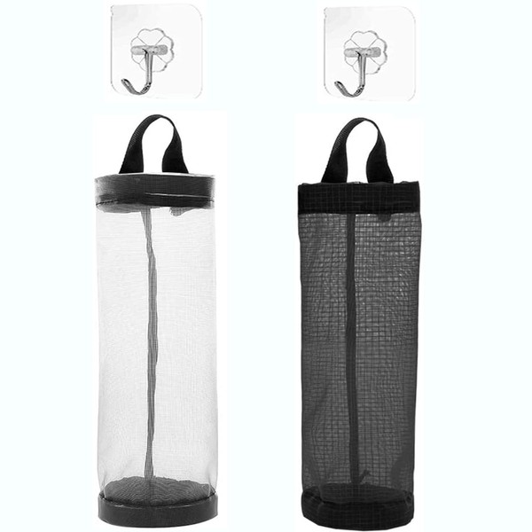 Plastic Bag Holder Dispenser Mesh Storage Garbage Bags Organizer Hanging (Black)
