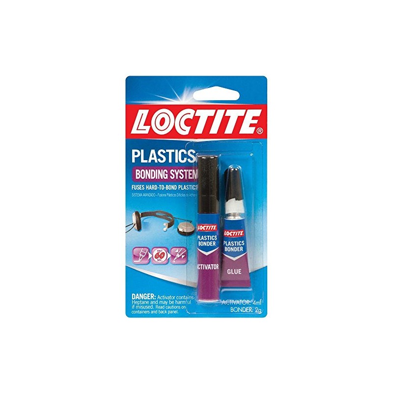 Loctite Plastics Bonding System is a two-piece cyanoacrylate decal that sets in seconds and develops tremendous strength with just one drop. The Activator primes hard-to-bond surfaces such as polypropylene and polyethylene. Loctite Super Glue plastics bonding system dries clear and sets without pressure. It is resistant to water, most chemicals and freezing temperatures.