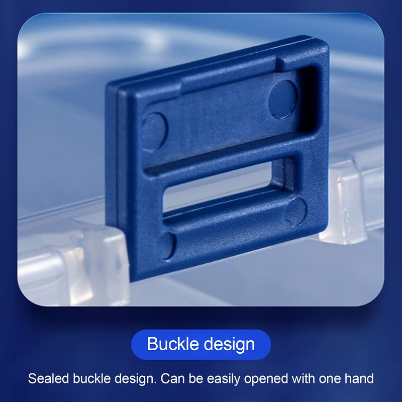 3. Sealed buckle design, dust proof and moistureproof, easy to open with one hand, clear case can help you find stuffs at a glance.