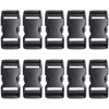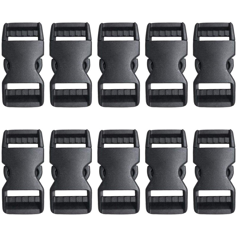 Plastic Buckles 1 Inch (Pack of 10)- Quick Side Release for Luggage Straps, Pet Collar, Backpack Repairing - Dual Adjustable End, Black, by Beaulegan