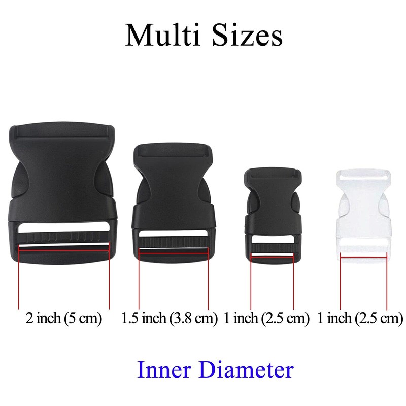 - SIZE - Three inner diameters: 2 inch, 1.5 inch and 1 inch. Fit 2 inch, 1.5 inch and 1 inch wide webbing or strap