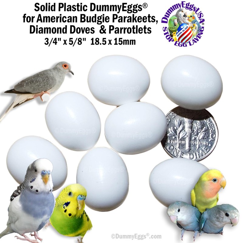 • PLASTIC 3/4" x 5/8" (18.5 x 15mm) BUDGIE EGGS STOP LAYING! 8 dummy eggs for American Parakeet, Parrotlet, Dia Dove