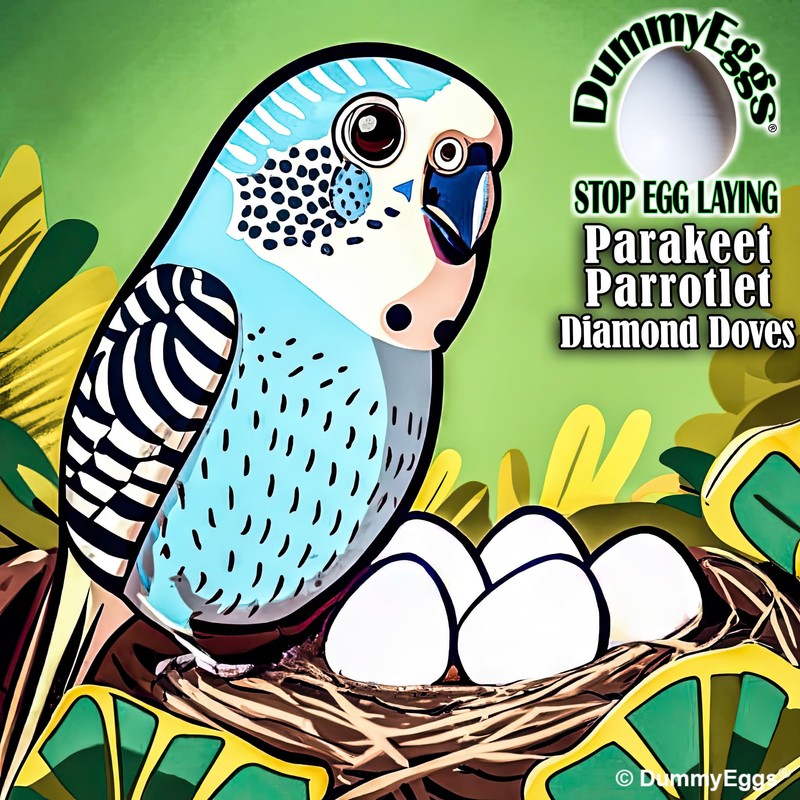 Control Egg Laying! Fast, Safely, Naturally. The DummyEggs brand Realistic fake Budgie eggs, provide an efficient, fast, and natural tool to control unwanted breeding and egg laying in small Budgie size birds. Our solid white non-toxic eggs are a unique size, modeled after real Budgie and Parrotlet eggs. This small size, 3/4" x 5/8", is perfect for Budgies / American Parakeets / Budgerigar, Diamond / Zebra Doves and Parrotlets. These little birds are prolific breeders laying many eggs in a clutch with consecutive cycles year-round. To use simply replace a full clutch of eggs with all your DummyEggs. This signals her DNA to stop producing more eggs and that it is time to incubate. No stress on her body, and no stress on you! Egg laying is a normal function but can cause great anxiety in owners and health risks to your bird. Remove the fake eggs when she is back to her non-hormonal self. Breeders use dummy eggs to increase chick survival by replacing laid eggs with plastic and mechanically incubating the real ones. Please read our directions included with your order carefully. — Please Help Us Prevent & Protect Homeless Birds