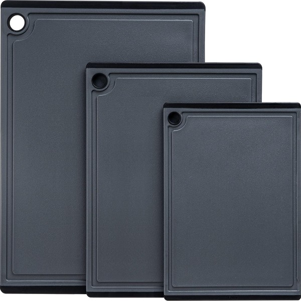 Plastic Cutting Coards for Kitchen, 3-Piece Large Cutting Board Set Dishwasher Safe Chopping Boards with Non-slip Feet and Juice Grooves, Gray, Kikcoin