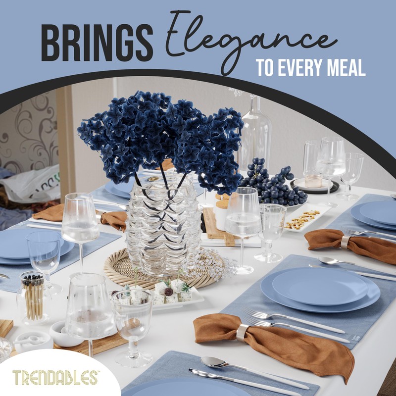 Plastic Dinnerware Set Plastic Plates 40 Piece Plastic Disposable Plates for Party Set - 20 Guests 20 X 8" Dessert Plates & 20 X 10" Plastic Plates Disposable Heavy Duty | Chambray Blue By Trendables