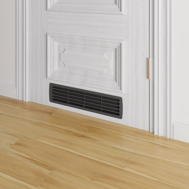 - Plastic mesh door ventilation in a variety of colours. - - The vents measure 457mm x 92mm and therefore comply with DIN 18017 construction requirement regulations. Our vents enable you to air closed rooms without windows such as guest rooms, bathrooms or utility rooms. Protects you from mould build-up as you can ensure sufficient air circulation. The Air Flow through the vent is 200cm². Our vents are always sold in pairs and are supplied with the screws. Our wide range of the plastic ventilation grills are ideal for a door size of 433mm x 77mm with a maximum door thickness of 35mm. Order now, quickly and easily, and install our vent in your house.
