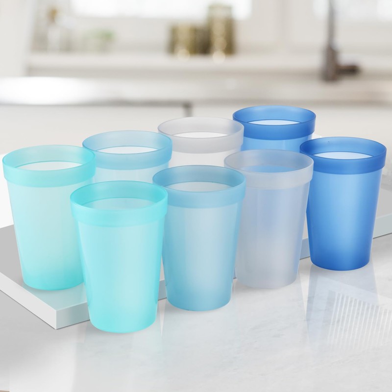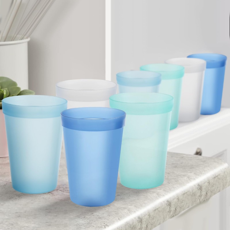 Plastic Drinking Cups Set of 8 – BPA-Free Reusable Tumblers, Stackable Everyd...