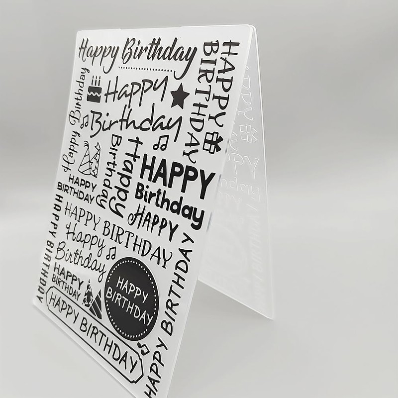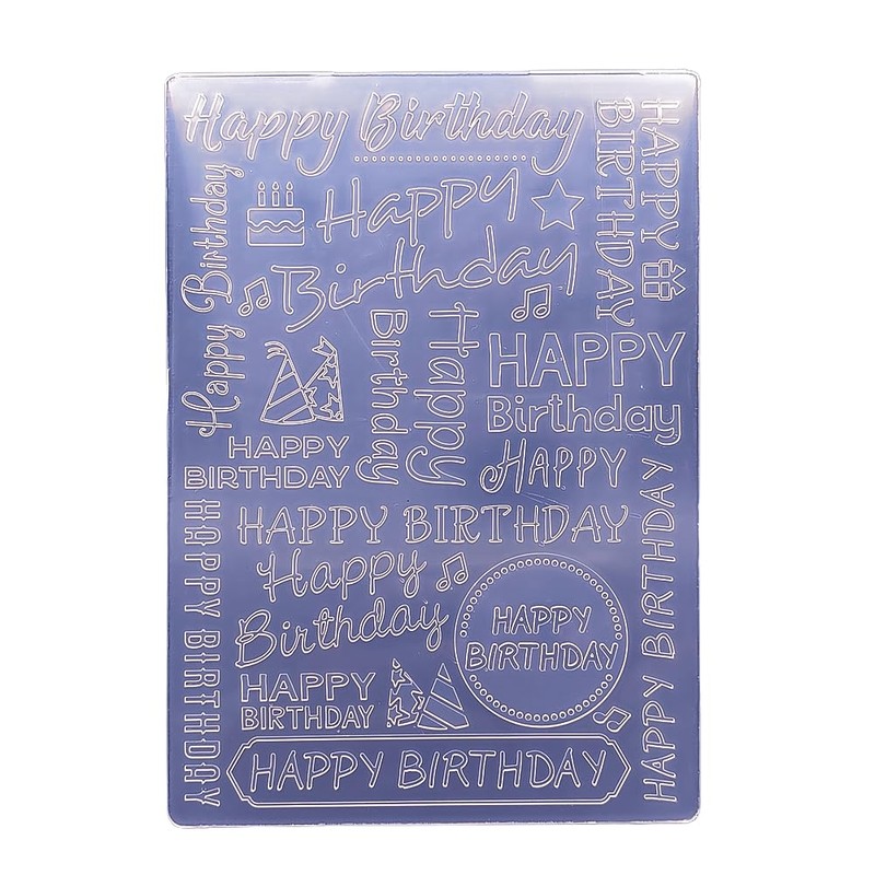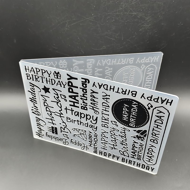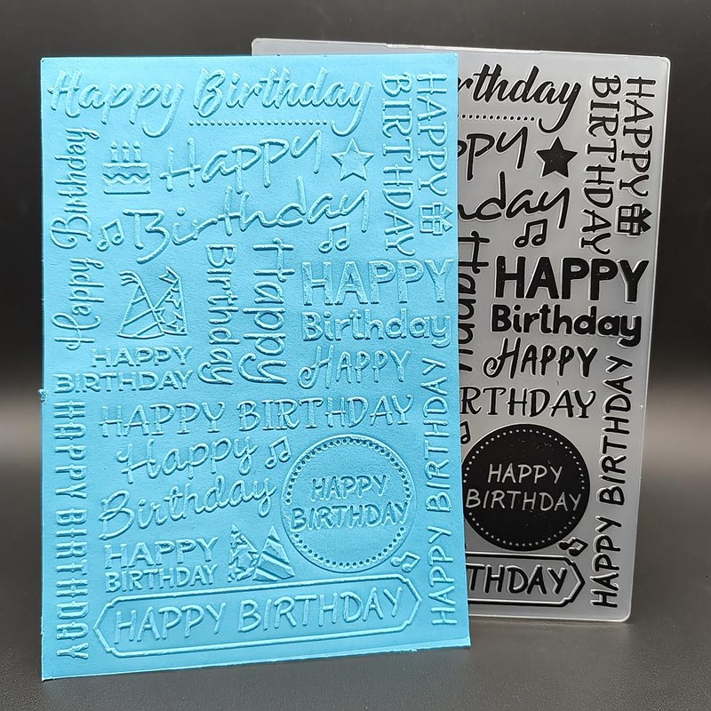Plastic Embossing Folder 5X7 Inch Birthday Wordart Paper Crafts Plastic Textured Impressions for Card Making Scrapbooking