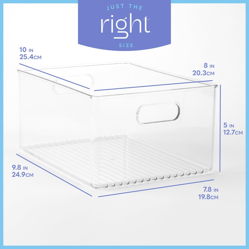 Plastic Food Storage 2 Pack Clear Container Bin with Handles for Organizing Kitchen, Pantry, Refrigerator, Freezer, Pantry, Cabinet, Closet, Bathroom 10”x8”x5”