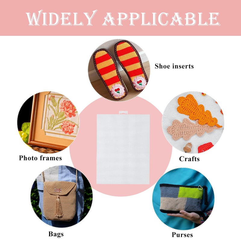 • These sheets are not just for embroidery and cross stitch. They are also great for other crafts like crochet and knitting. The plastic material is durable and can withstand the rigors of these crafts, ensuring that your projects will last.