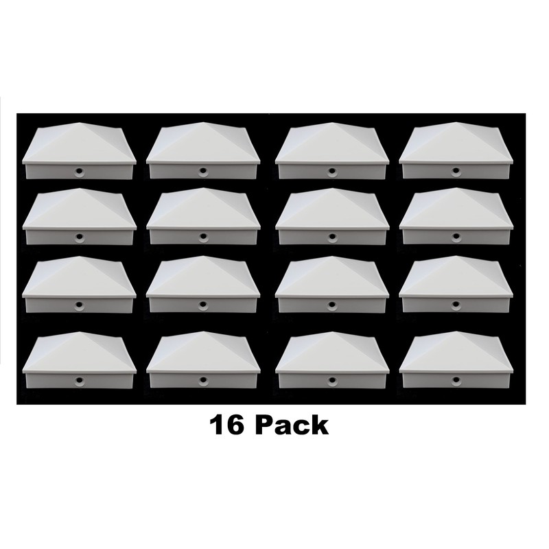 Plastic Pyramid 4x4 Nominal (3-5/8"x3-5/8") Fence Post Caps with Pre-Drilled Hole Black or White Multi- Quantity Packs (16, White)