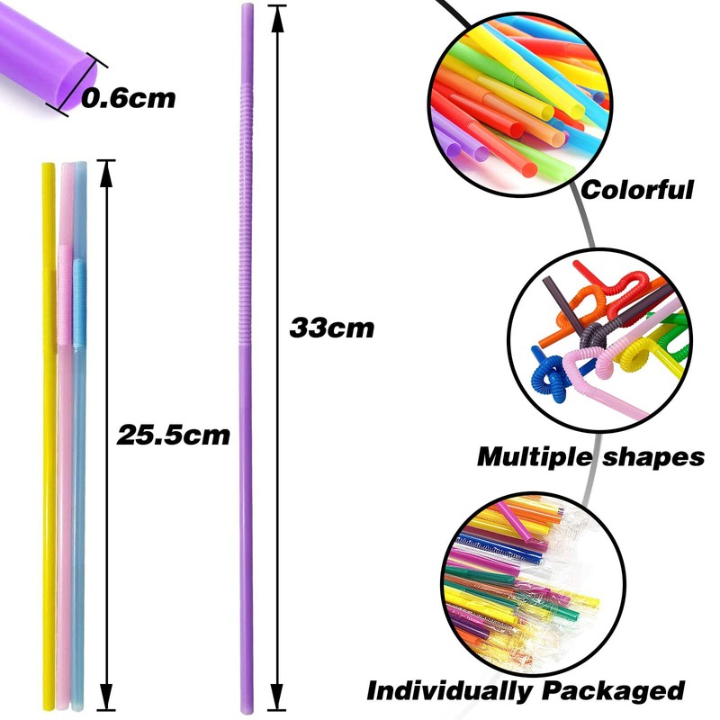 Plenty of plastic straws, adjustable in length, flexible straws can be woven into beautiful shapes, great for beach parties, and individually wrapped to keep straws clean