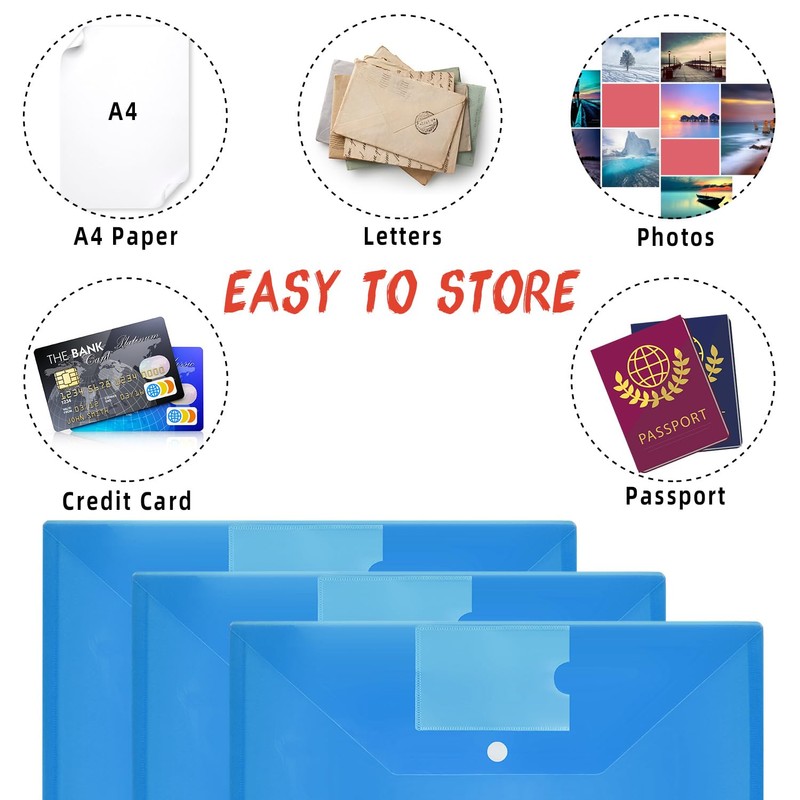 - Multi-Use: Our A4 document wallet is portable to keep your items organized and sturdy enough to store university essentials, stationery and office supplies; the A4 envelope folders can be used at school, home, work, office travel, and business trip.