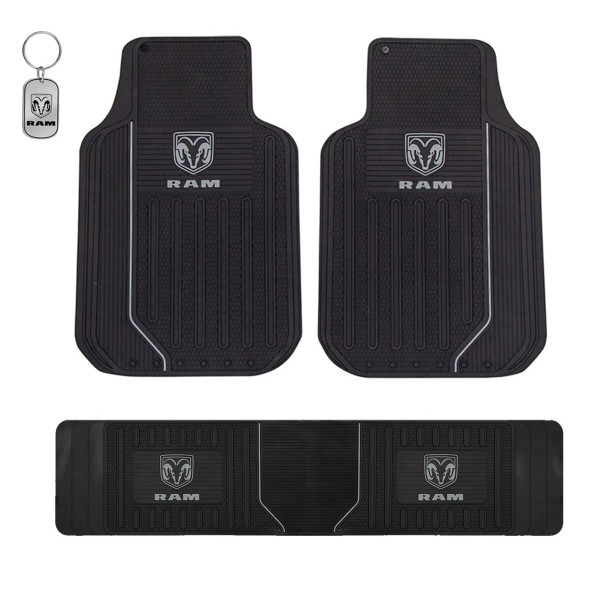 PlastiColor New Ram Logo Car Truck 2 Front Floor Mats with Runner Mat and Keychain
