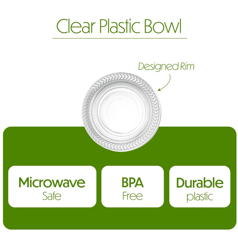 - Convenient disposable plastic soup and sald bowls save your time and energy with minimal and easy clean up after meals, parties, and events.