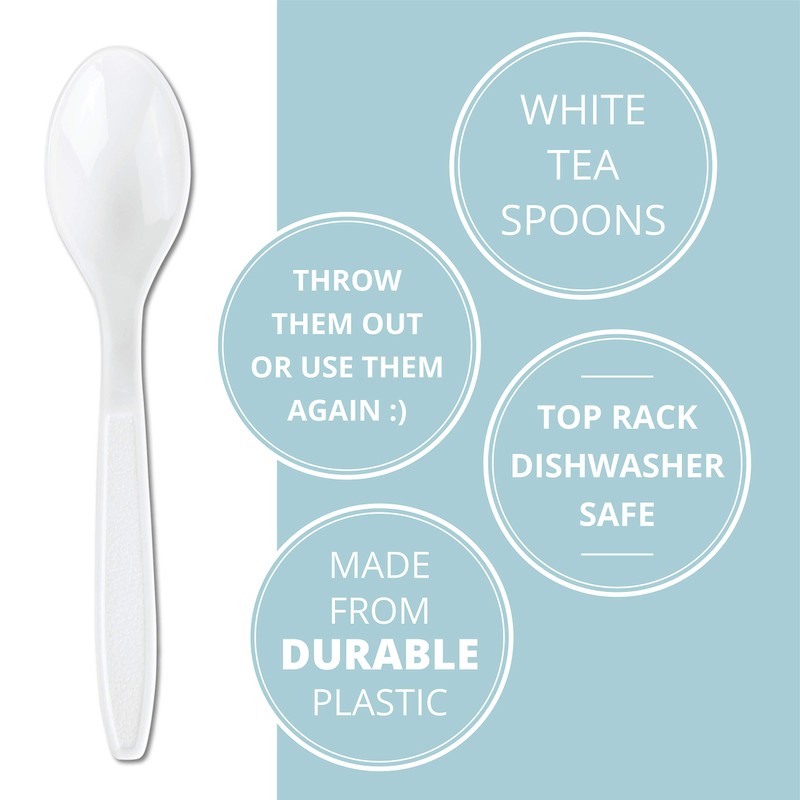 • Plasticpro 200 Pack Deluxe Heavyweight White Plastic Tea Spoons- Great for everyday use or party, wedding, event, etc.