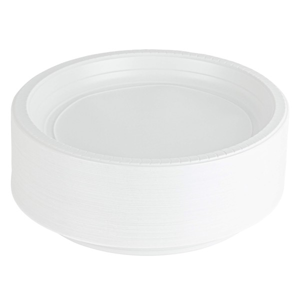 PLASTICPRO Round Plastic Plates Microwaveable, Disposable, White, Dinnerware (100, 10" Inch Plates)