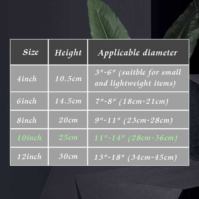 Size 10: Height 9.8 inches (25 cm), Diameter 9.8 - 13.8 inches (25 - 35 cm).