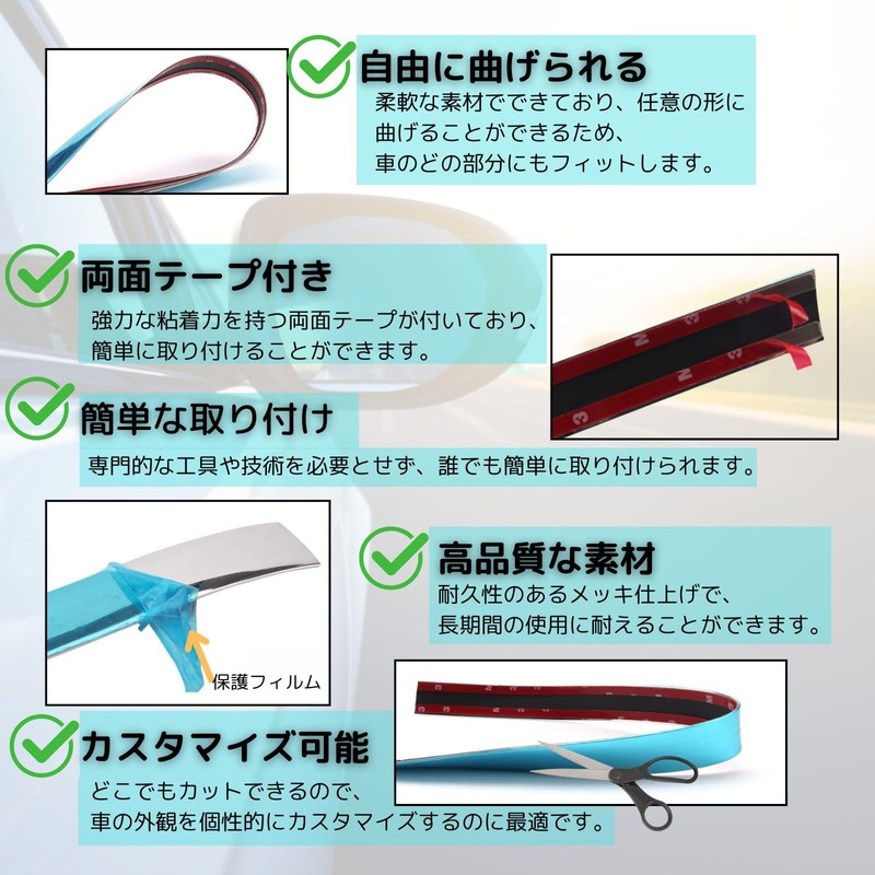 - 【Examples of Installation Location】The plating molding is highly versatile and can be installed in a variety of locations. Examples include windows, mirrors, bumpers, roofs, front grilles, body sides, interior panel and more. No matter where you install it, you can expect a luxurious look and style
