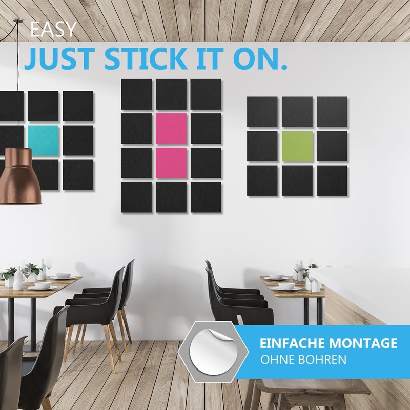 Box contents: 9 square acoustic elements with high-quality acoustic felt surface: