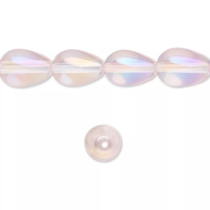 Platinum 1 Strand Aurora Borealis Pink Glass 11x8mm Smooth Teardrop Beads 1.5-2mm Hole *