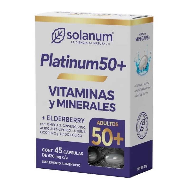 Platinum 50+ Vitaminas Minerales + Elderberry Solanum 45caps Sabor Sin Sabor