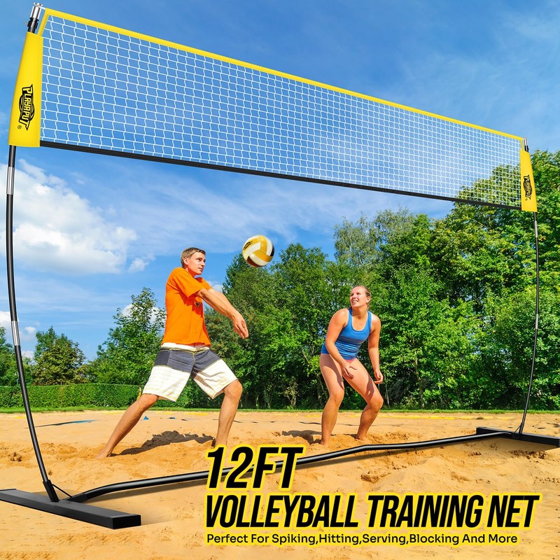 PLAYAPUT 12FT Freestanding Volleyball Net,Height Adjustable Volleyball Training Net For Hitting,Serving,Setting Practice,Protable Volleyball Nets With Volleyball,Carrybag,Perfect For Indoor Or Outdoor
