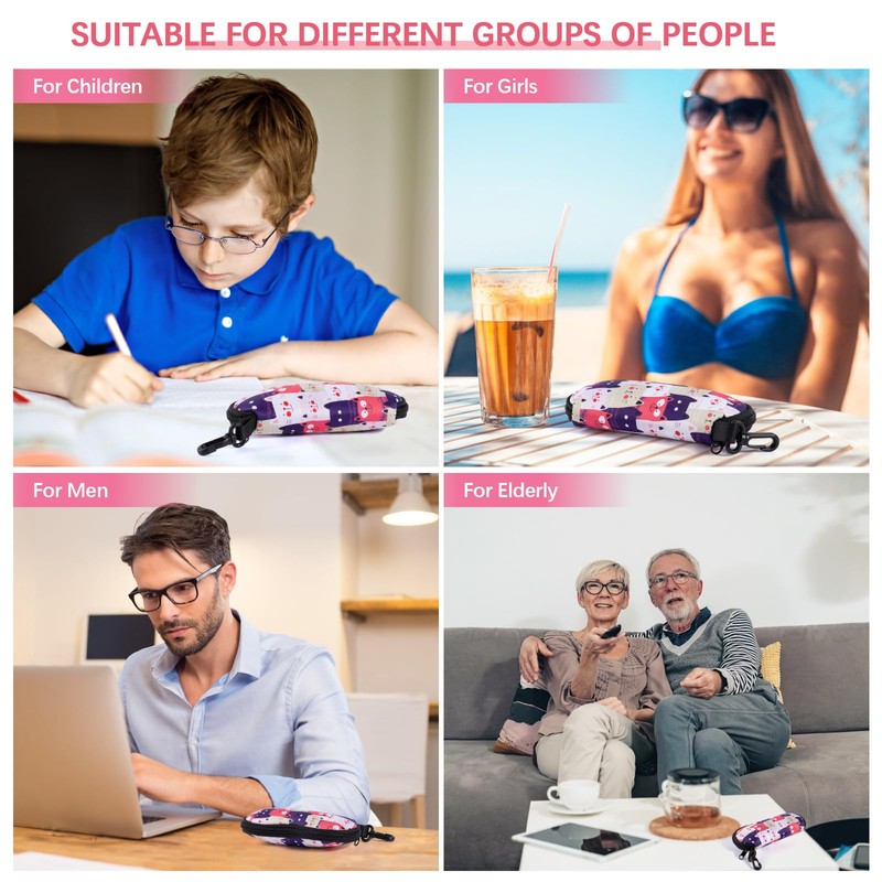 - ✅ EASY TO CARRY The glasses case measures 17.5 x 8.5 cm and comes with a hook for mountaineering buckle. The small and portable design is convenient to attach to your bag, belt, so you can do any activity.