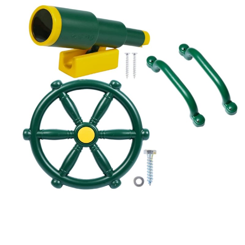 Playground Accessories for Kids,Swingset Attachments with Pirate Ship Wheel, Toy Telescope and Safety Handles,Pirate Accessories for Kids Treehouse (Green 3 PCS)