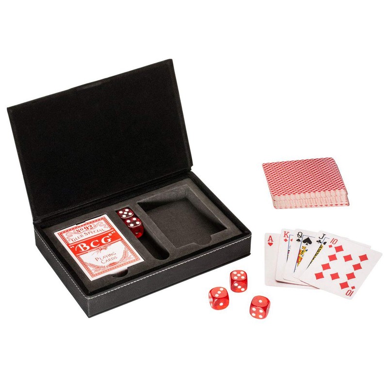 • The playing card set includes 110 cards with 6 jokers (French leaf) and 5 dice