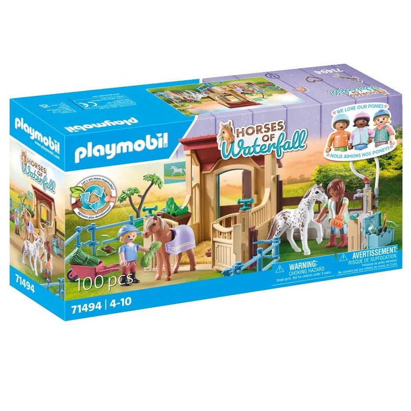 - Horses of Waterfall de PLAYMOBIL está fabricado con más de un 80% de productos sostenibles.