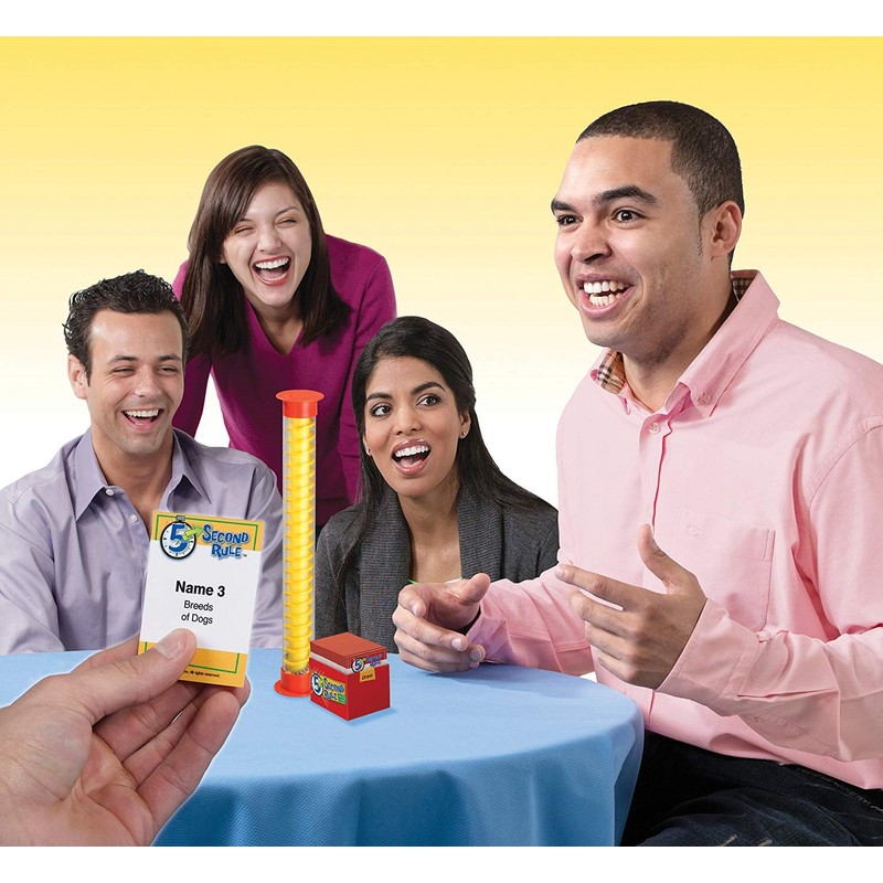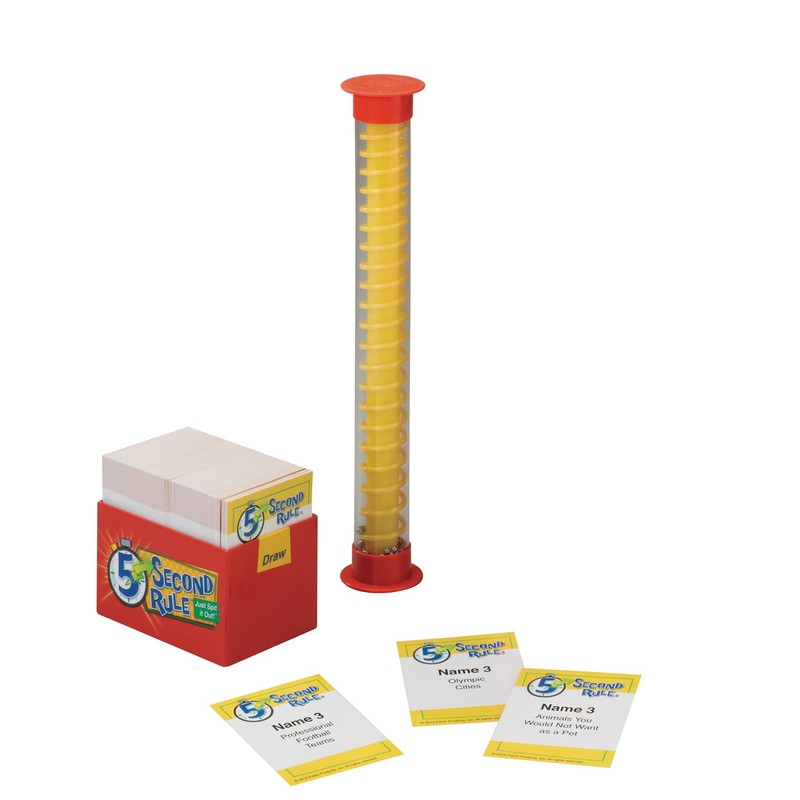 - Pick a card, read the seemingly easy topic, then start the timer! Now with only 5 seconds to name 3 things that fit the topic, it doesn't seem so easy!
