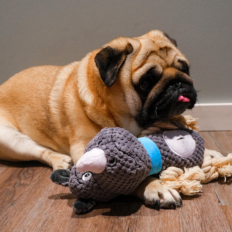 PlaynPaw Rhino Chew Toys Plush Dog Toys, Cute Squeaky Toys for Small Medium and Large Dogs, Soft Chew Toys for Puppy Teething, Doggie Toys for Interactive Play, Gray