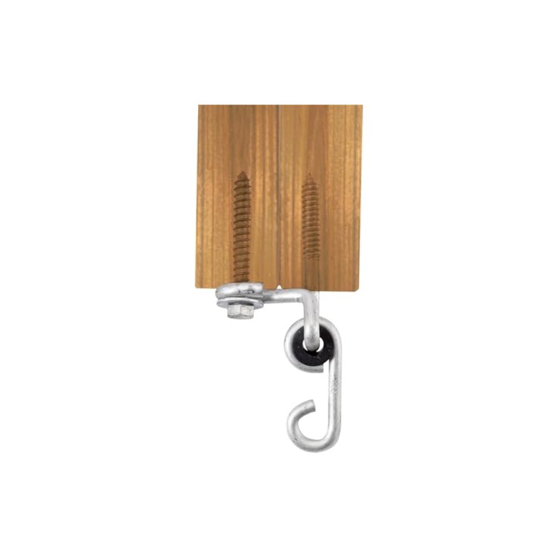 Nylon bushing for smooth, quiet swinging. Threaded end functions like an eyebolt while hex-head fastener through loop end reinforces for greater strength. Designed for hanging PlayStar swinging accessories. 15-minute installation time. 120-pound weight rating per pair. Includes 1 pair of hangers, all mounting hardware, and easy-to-follow instructions.