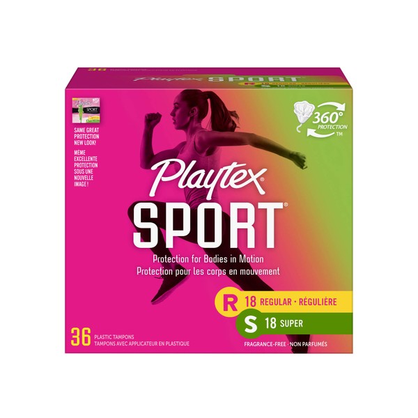 Playtex Sport Tampons, Unscented Regular/Super Absorbency, 36 ct Packaging may Vary