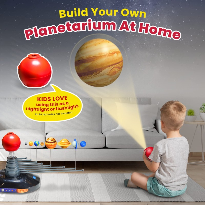 • STUNNING VIEWS: The sun is a portable HD projector that projects 8 beautiful planets on any surface! Many kids use it as a cool nightlight or flashlight. (4x AA BATTERIES NOT INCLUDED)