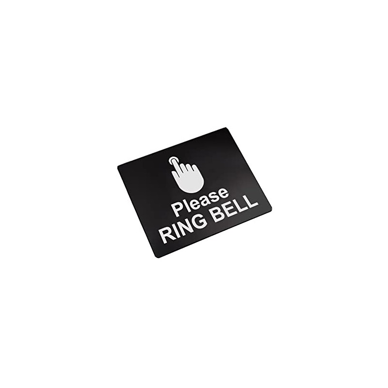 Please Ring Bell Sign Adhesive Sticker Notice, SILVER/GOLD/BLACK engraved with Universal Icon Symbol and Text (Size 12cm x 10cm). Waterproof and Durable.