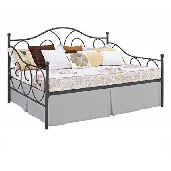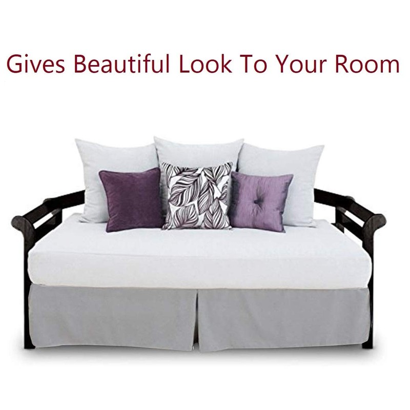 Pleated Bed Skirt with Split Corners for Daybeds - Three Side Coverage - Made with Brushed Microfiber, (Twin Size, Light Grey Solid)/12 Inch Drop