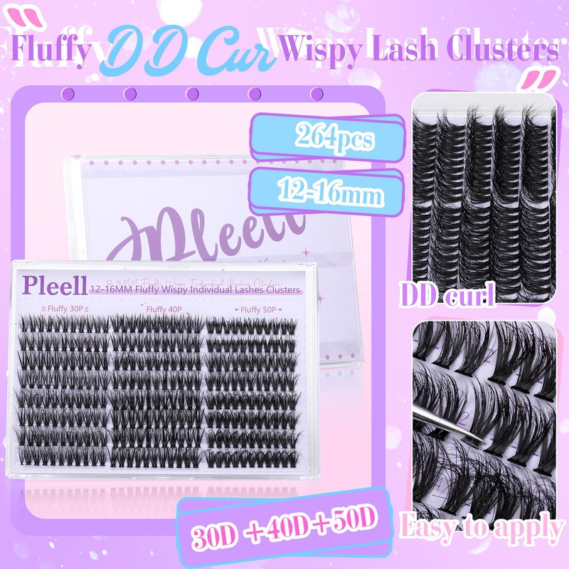 - Fluffy Wispy Lash Clusters - Pleell's cluster lashes technology has been upgraded, with each cluster of lashes now featuring multi-layered D lashes. Pleell lashes clusters are fluffy and natural from every angle, allowing you to achieve the effect of professional lash extension salon at home with DIY application.