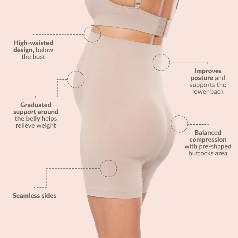 pliē Women's Pregnancy Bermudas, Comfortable Fit, Improves Posture And Gives Lumbar Support, Base, Medium