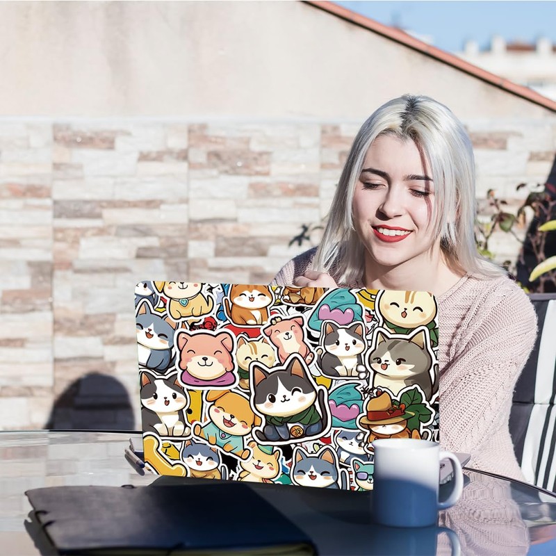 PLIGREAT Laptop Sticker in Stack Cartoon Avatar Style Suitable for 12 Inch 13 Inch 13.3 Inch 14 Inch 15 Inch Laptops Cute Pattern Universal Removable Waterproof Notebook Art Sticker
