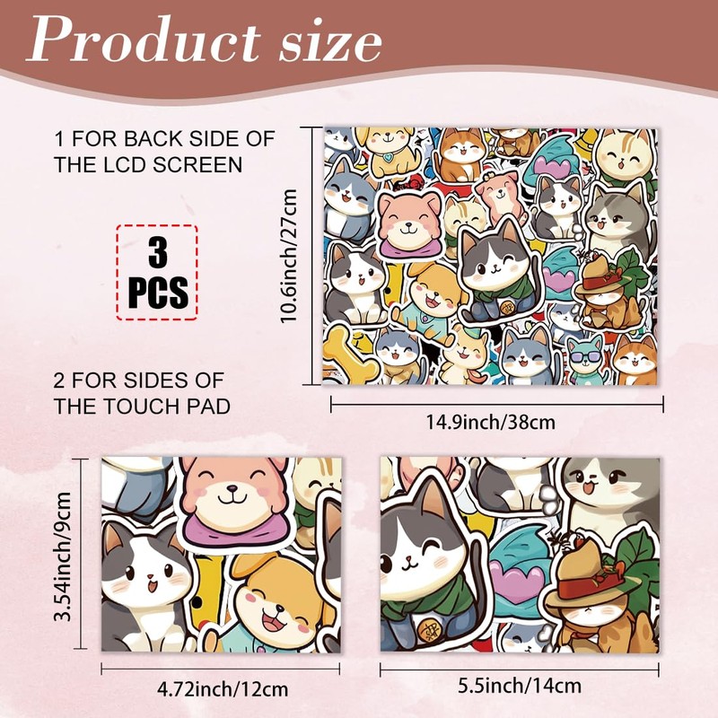 - Size: Our computer stickers are 14.9 x 10.6.38 x 27 cm and fit 12 inch, 13 inch, 14 inch, 15 inch widescreen laptop. You need to cut the stickers to fit your laptop.
