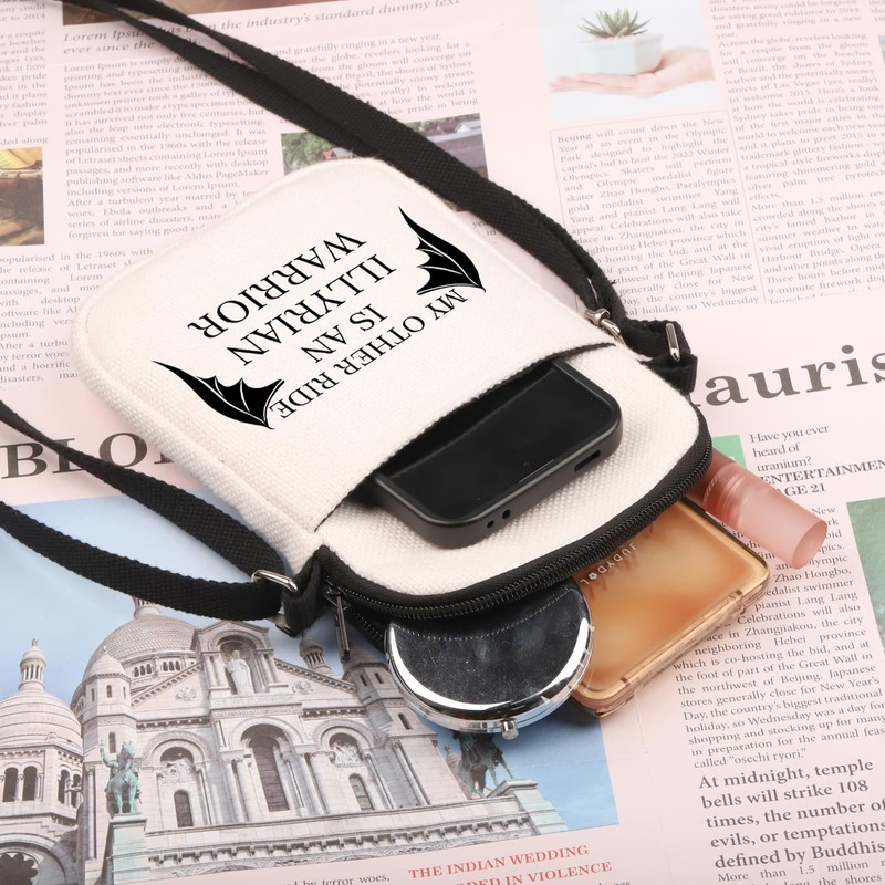 PLITI Bat Boys Gift Sarah J Maas Fan Gift My Other Ride Is An Illyrian Warrior Acotar Crossbody Bag For Book Lover, Illyrian Warrior Zcbagu