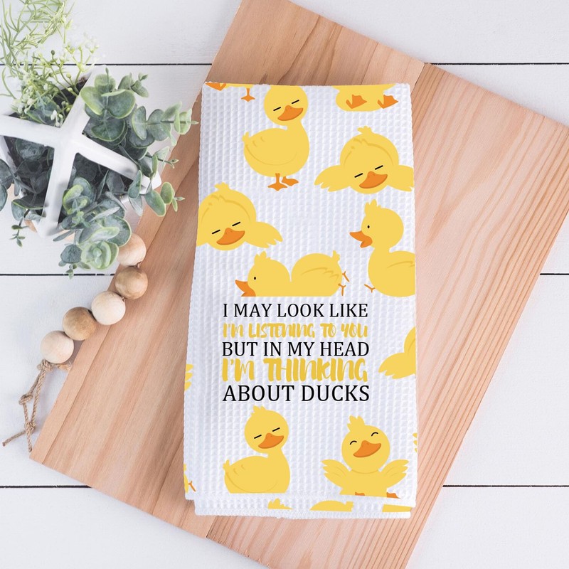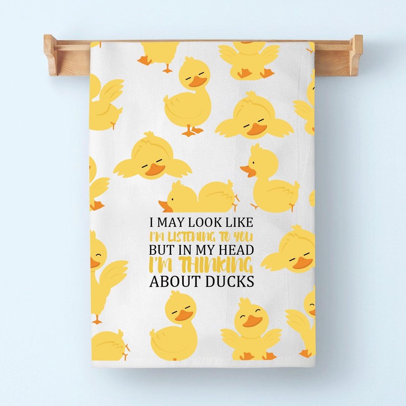- Towels with Duck Lover Quote: I MAY LOOK LIKE I'M LISTENING TO YOU BUT IN MY HEAD I'M THINKING ABOUT DUCKS. It’s a perfect gift for Duck Lover, Duck Mom, Duck Owner, Cute Duck, Animal Lover, Yellow Rubber Duck Lover.