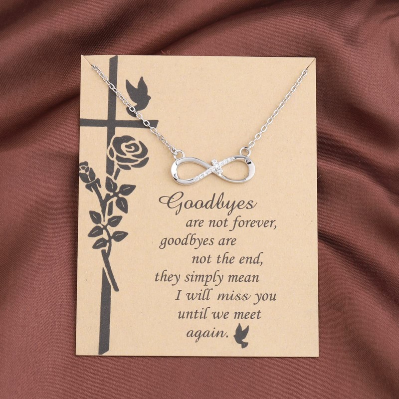 PLITI Sympathy Gift Goodbyes Are Not Forever Goodbyes Are Not The End Infinity Cross Necklace Loss of Loved One Remembrance Gift (Goodbyes necU)